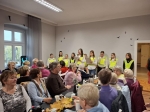 W dniu 30.10.2025 r. uczniowie naszej szkoły wybrali się na spotkanie z seniorami , podczas którego zaprezentowali program o bezpieczeństwie na drodze oraz przypomnieli dlaczego warto nosic odblaski. Na koniec uczniowie rozdali seniorom opaski odblaskowe z życzeniami zdrowia i bezpiecznego poruszania się po drogach. Dziękujemy ks. Michałowi Sośnikowi za zaproszenie, a seniorom za ciepłe przyjęcie.